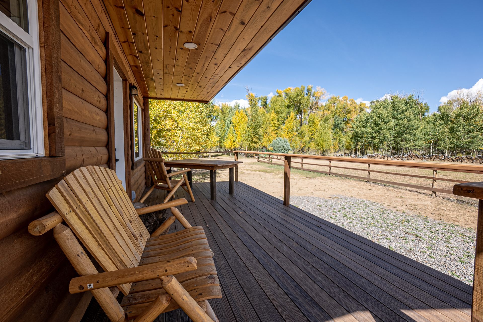 Serenity guaranteed. It's a private setting in an Aspen Grove near the paddock. Not far from the main cabin.